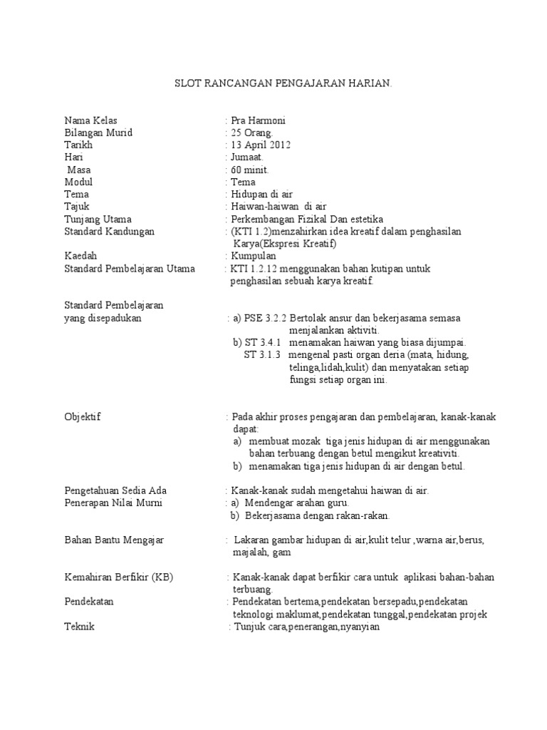 Contoh Rph Pedagogi Bermain