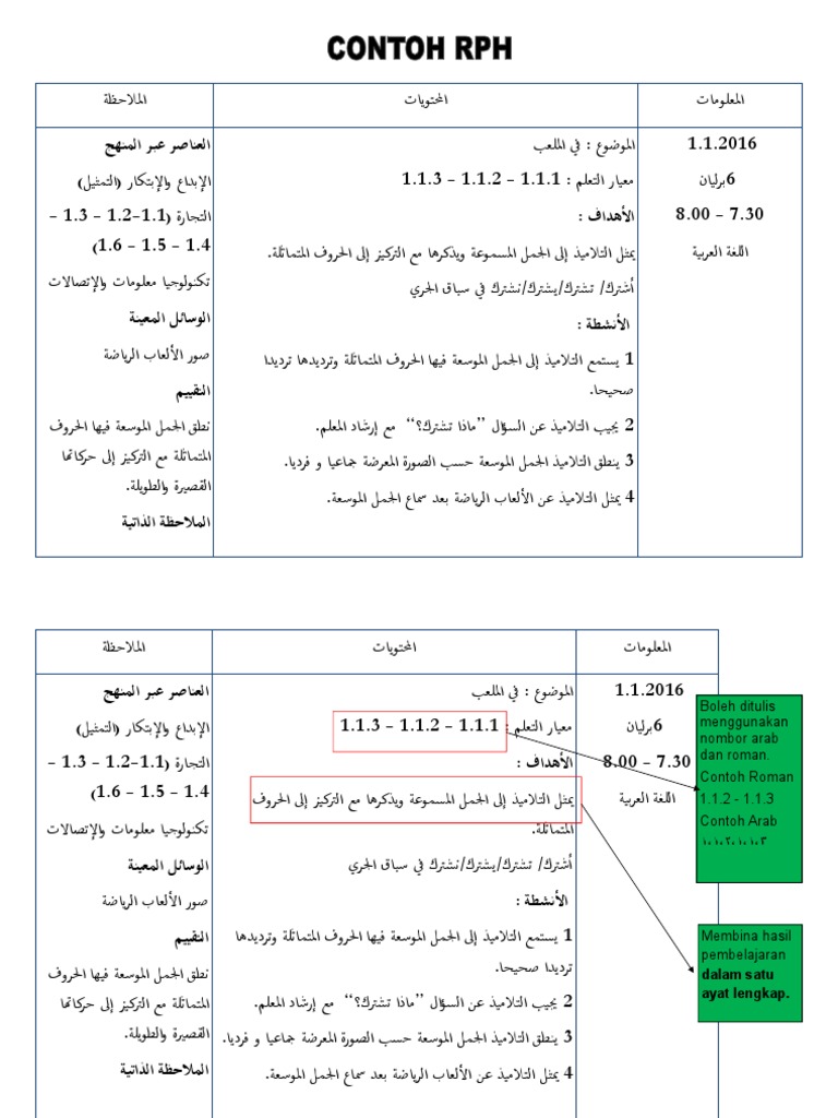 Contoh Penulisan Rph Bahasa Arab 2015 Kegunaan Negeri Johor Thn 5 M1