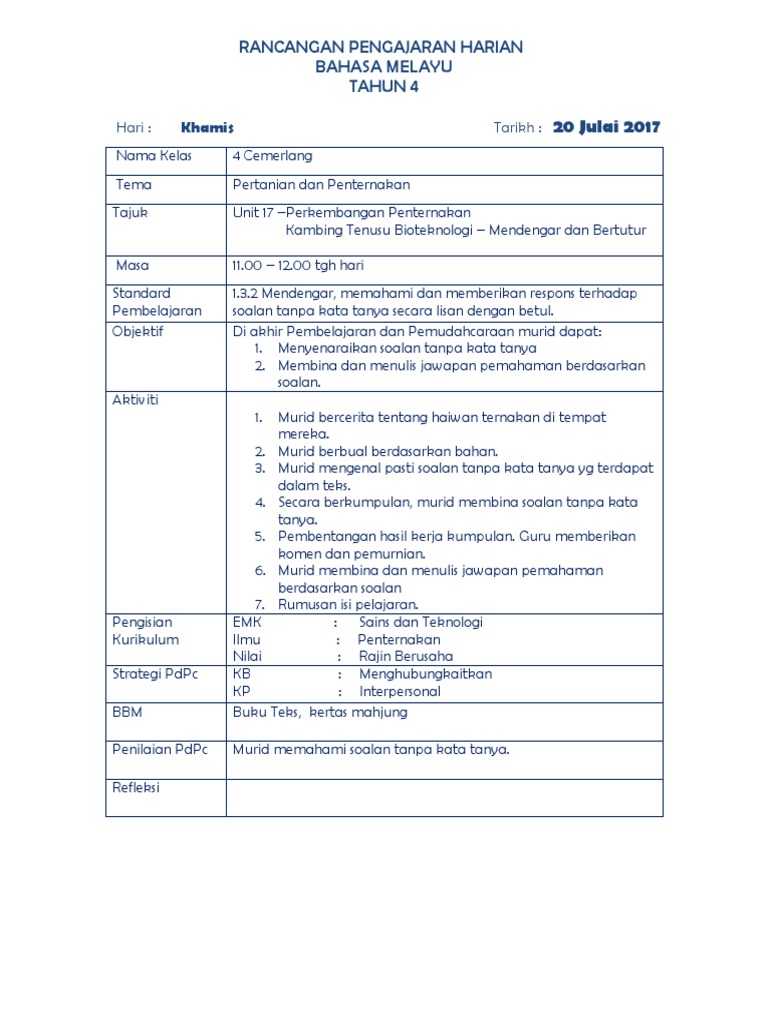 Rph Bm Tahun 4 Minggu 26 Khamis 20 Julai 2017