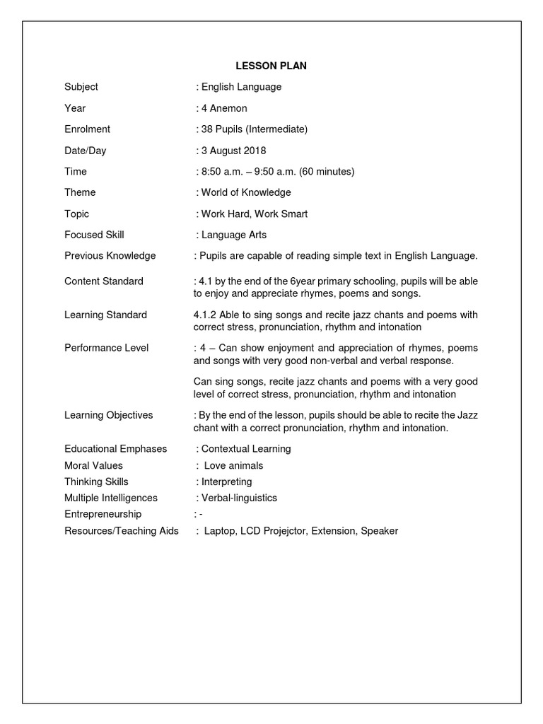 Contoh Rph Bahasa Inggeris Lesson Plan Human Communication