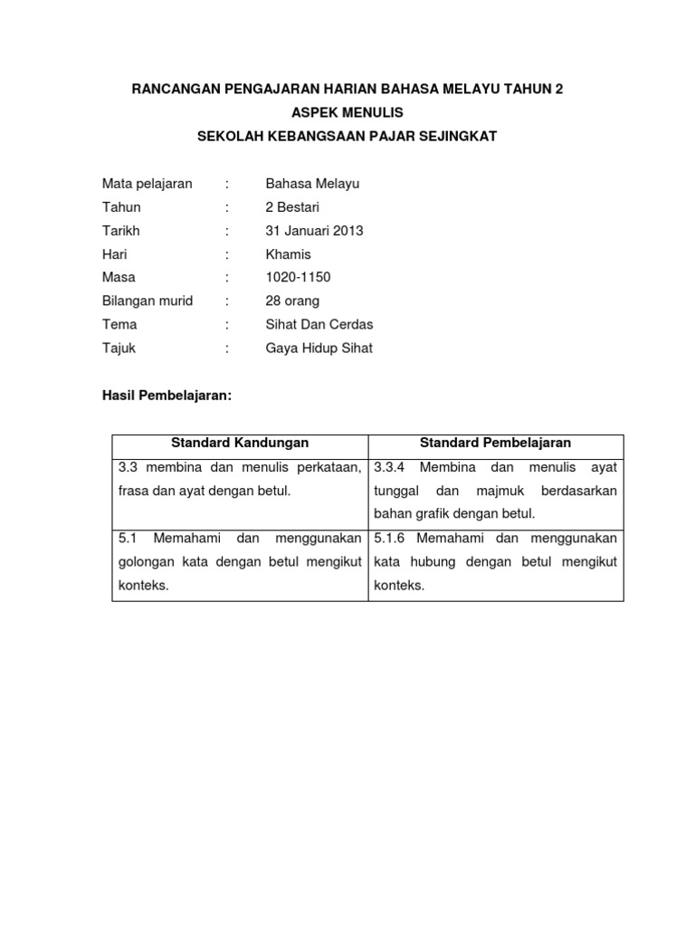 Doc Rph Kssr Bahasa Melayu Tahun 1 Tahun 2 Docx Nia Marara Academia Edu