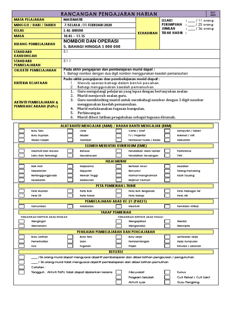 Rancangan Pengajaran Harian Panitia Bahasa Melayu Sk Bukit Balacon Mata Pelajaran Bahasa Melayu Kelas 5 Intelek Tarikh Templates Critical Thinking Education