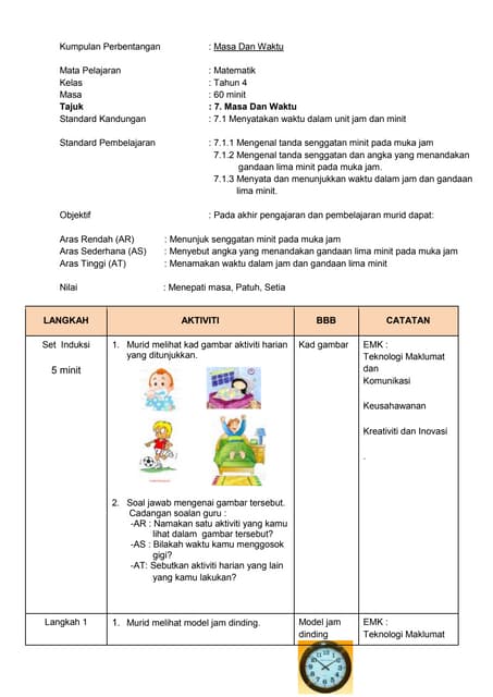 Rph Matematik Tahun 5 Masa Dan Waktu