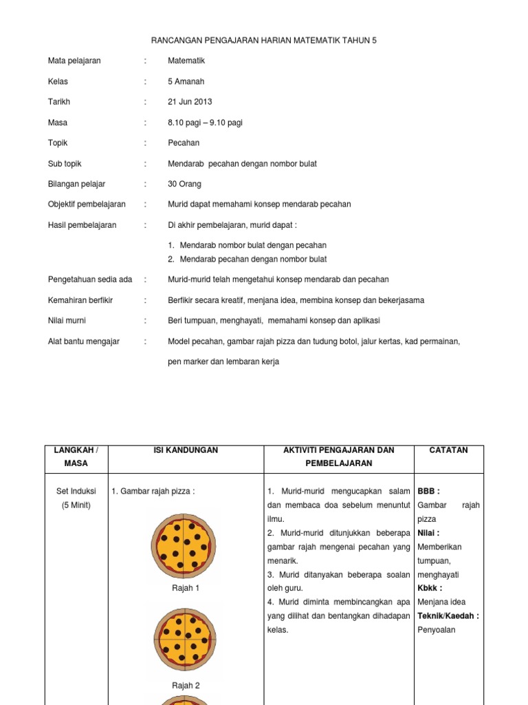 Rancangan Pengajaran Harian Matematik Tahun 5 Pecahan Latest