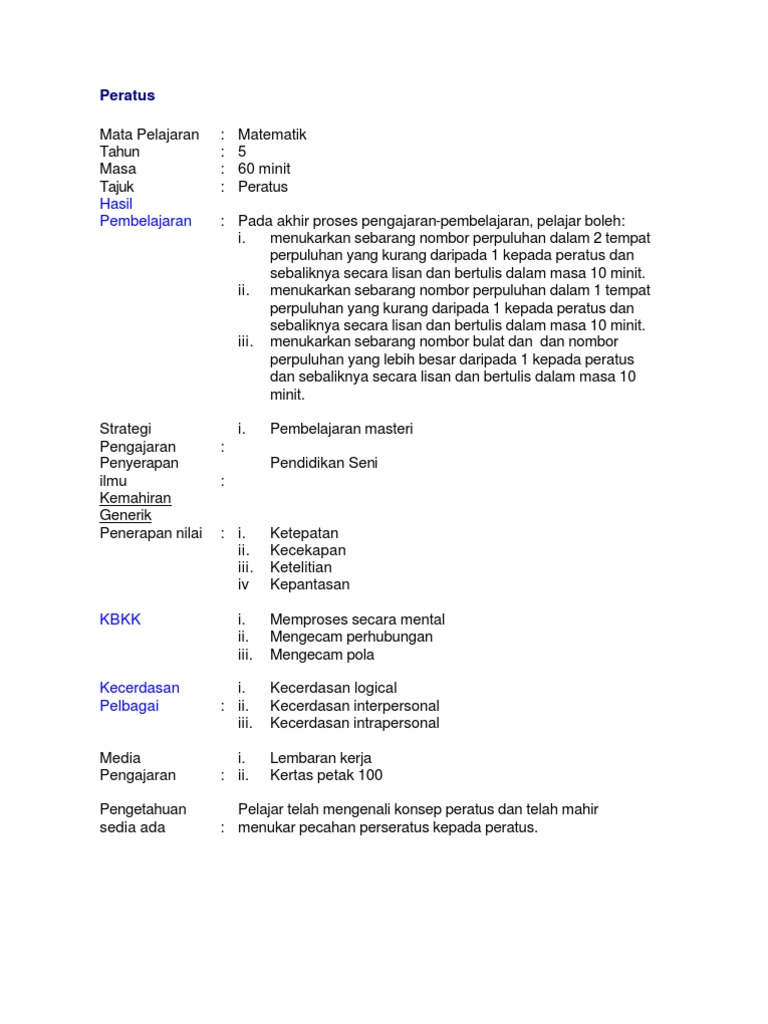 9 Peratus Docx Rancangan Pengajaran Harian Pak21 Matematik Tahun 4 Tarikh Kelas Masa Bidang Tajuk Standard Kandungan Standard Pembelajaran Objektif Course Hero