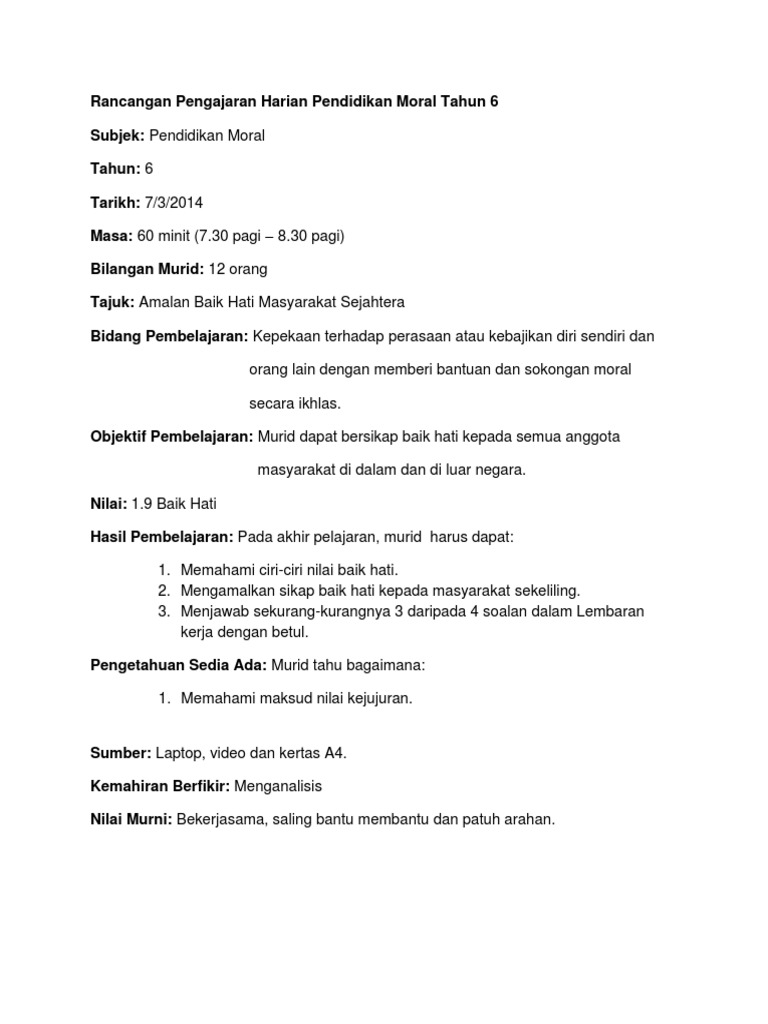 Rancangan Pengajaran Harian Pendidikan Moral Ahmad Husaini Academia Edu