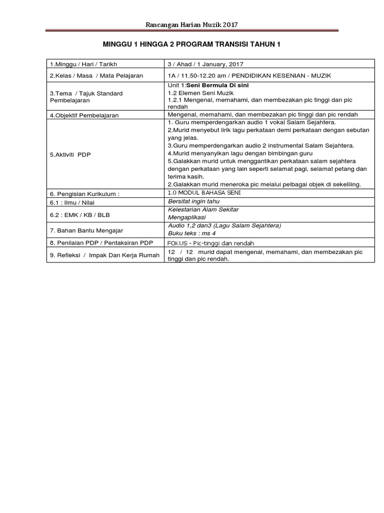 Rph Pendidikan Kesenian Muzik Tahun 1 2017