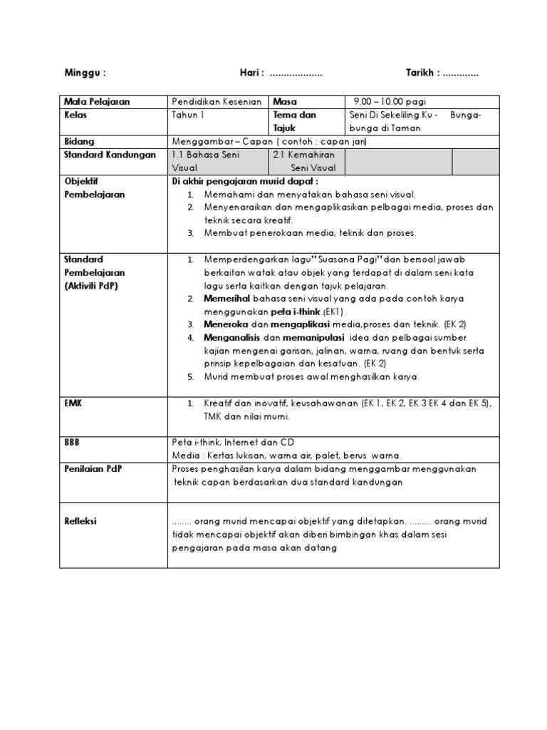 Rph Pendidikan Kesenian Tahun 1 Sumber Pendidikan