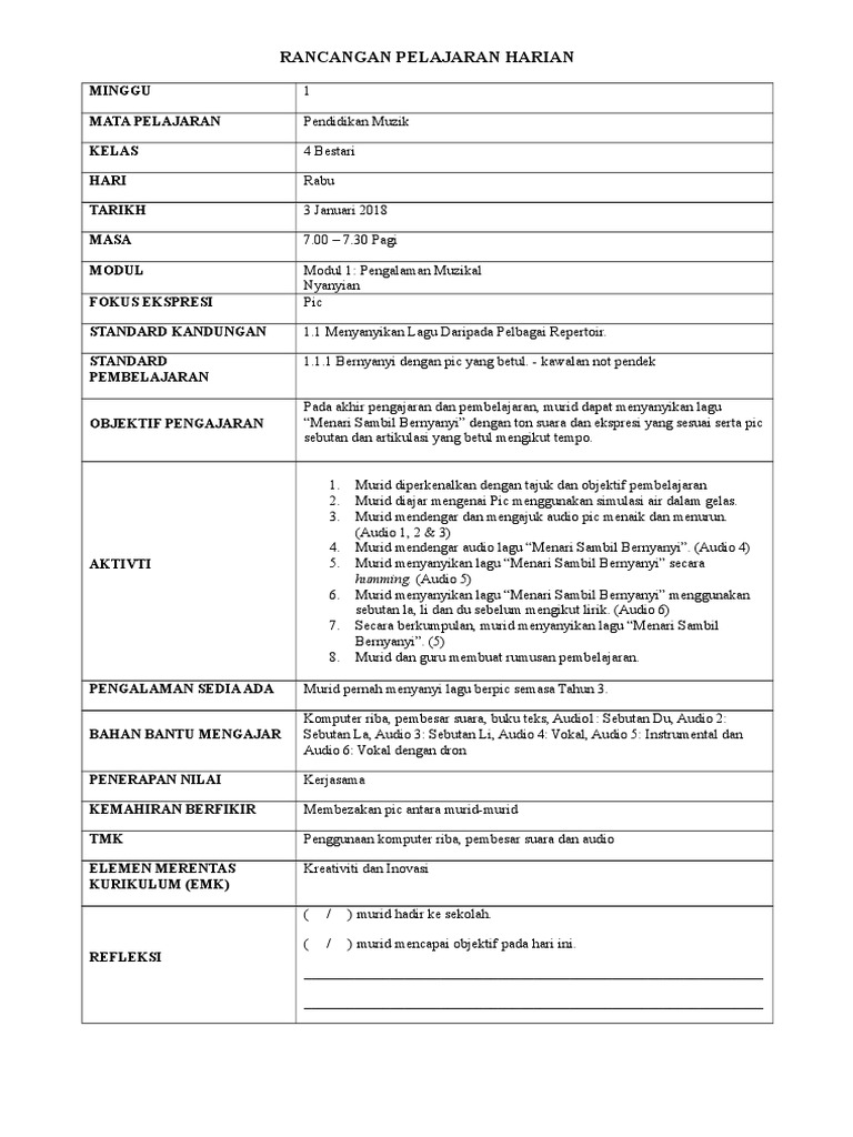 Contoh Rph Muzik Tahun 4 2018