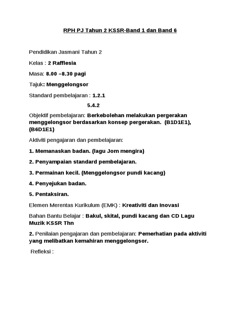 Pdf Rancangan Pengajaran Harian Pendidikan Jasmani Kssr Tahun 2 Rod Zie Academia Edu