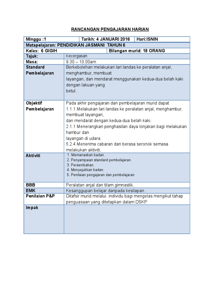 Rph Pendidikan Jasmani Tahun 6 Sumber Pendidikan