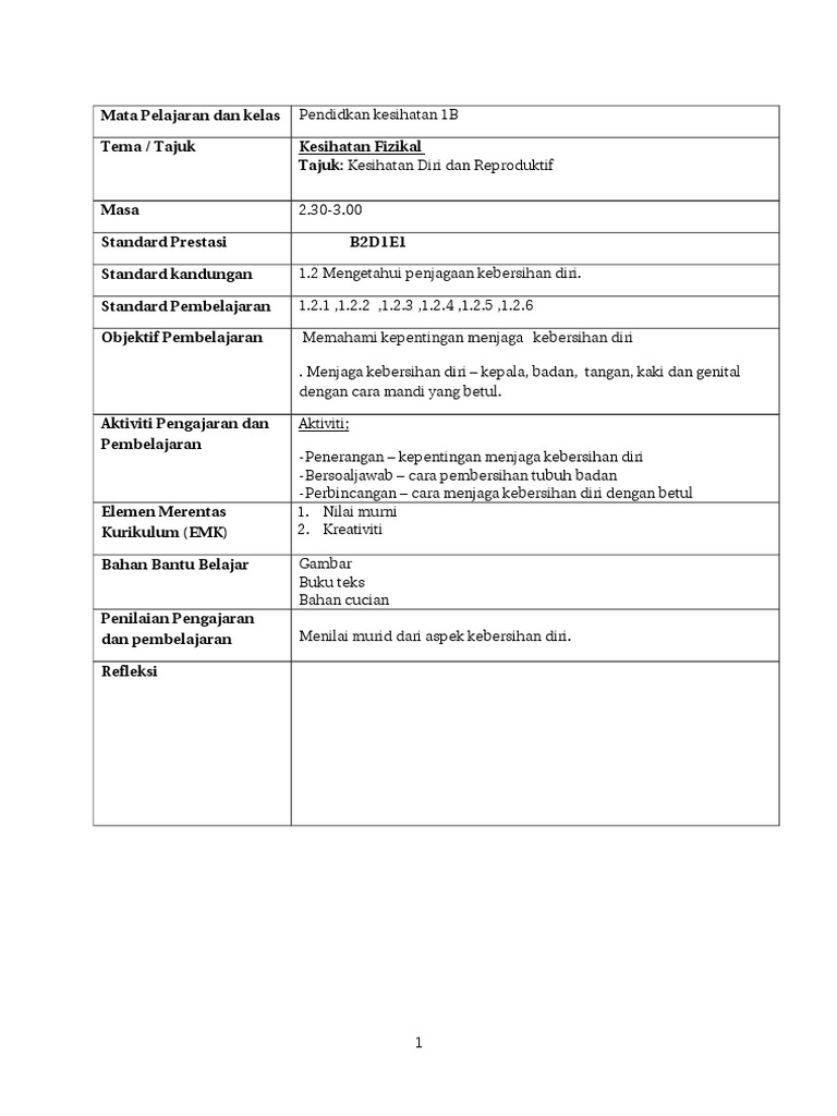 Rph Pendidikan Kesihatan Tahun 1 Gurubesar My