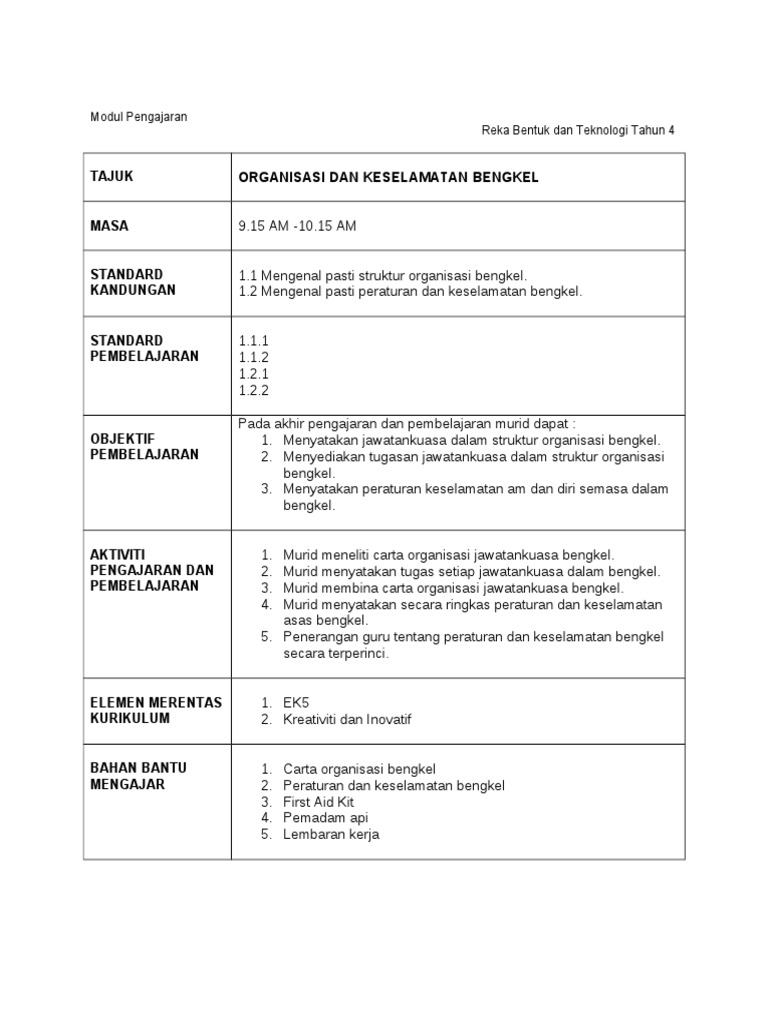 Dskp Kssr Semakan 2017 Tahun 4 Reka Bentuk Dan Teknologi