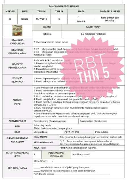 Download Rpt Reka Bentuk Teknologi Tahun 5 Terbaik Rph Rbt Tahun 5 Skoloh