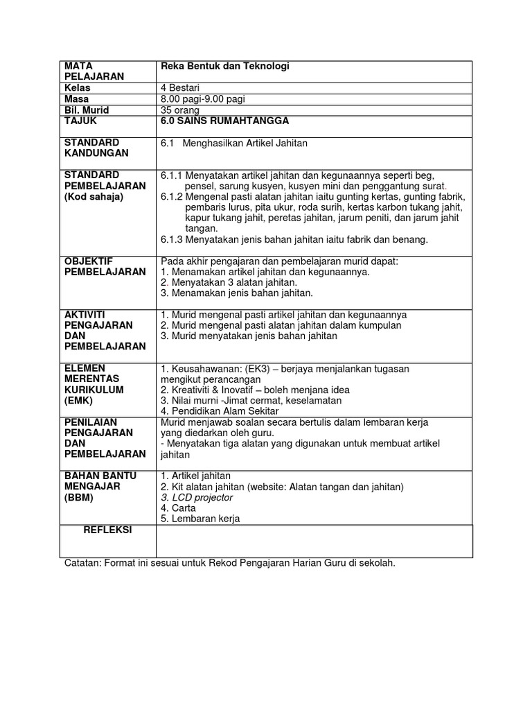Contoh Rph Reka Bentuk Dan Teknologi Tahun 5 Ver 1