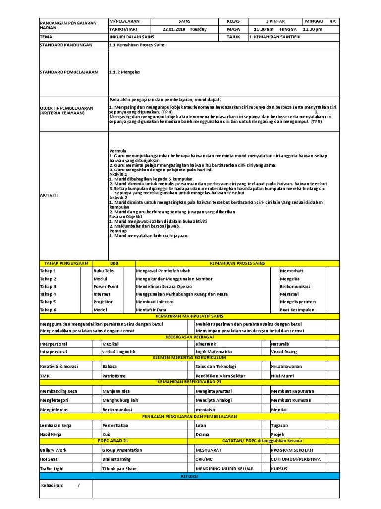 Rph Tahun 1 Kssr Rancangan Mengajar Tahun 1 Dunia Sains Dan Teknologi