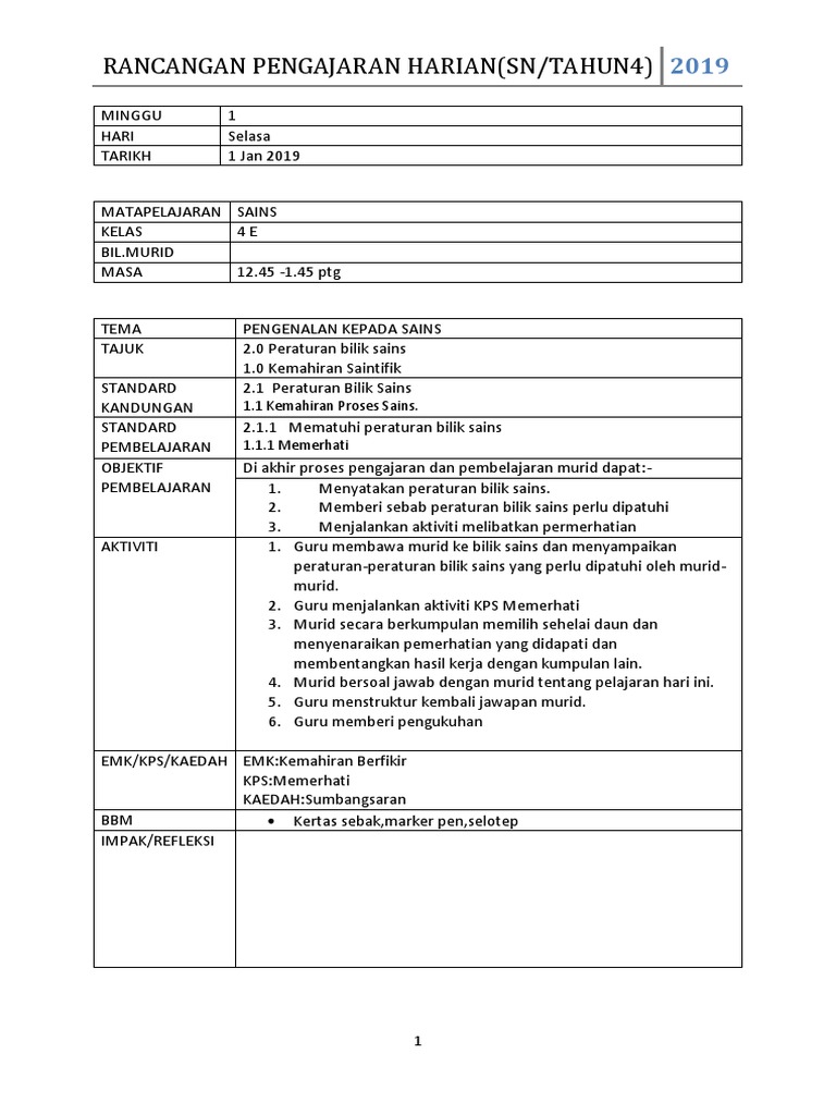 Rph Tahun 1 Kssr Rancangan Mengajar Tahun 1 Dunia Sains Dan Teknologi