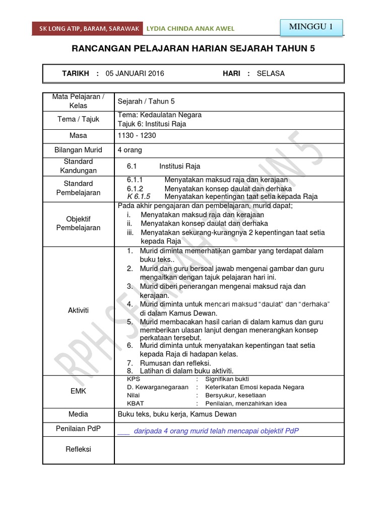 Rancangan Pengajaran Harian Sejarah Mata Pelajaran Dan Kelas Sejarah Tahun 6 Cemerlang Tema Tajuk Kita Rakyat Malaysia Mas Edgy Outfits Fails Day