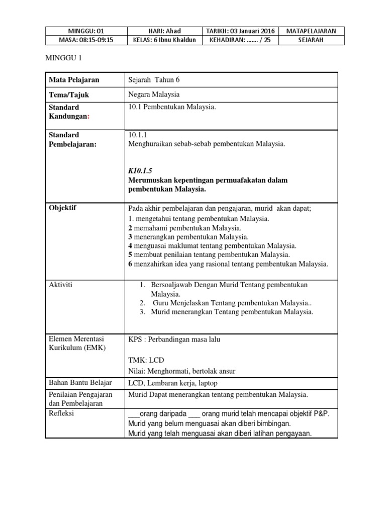 K6 Rph Kssr Sejarah Tahun 6 Smk Taman Mahsuri