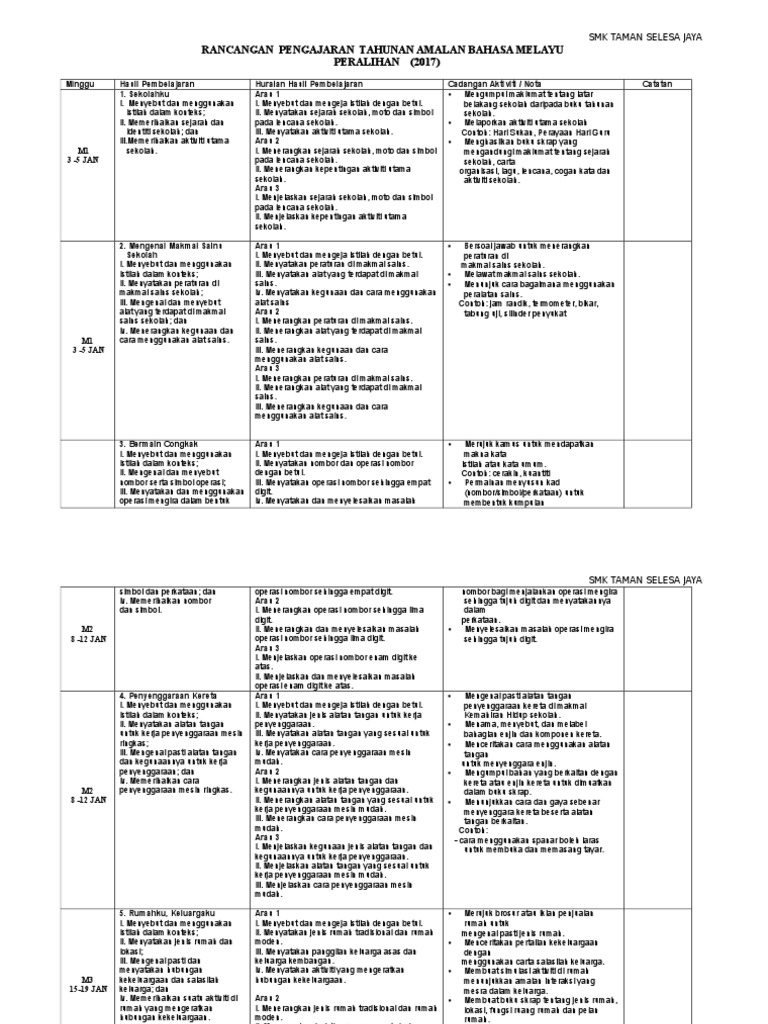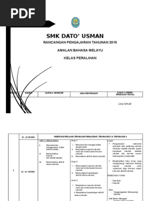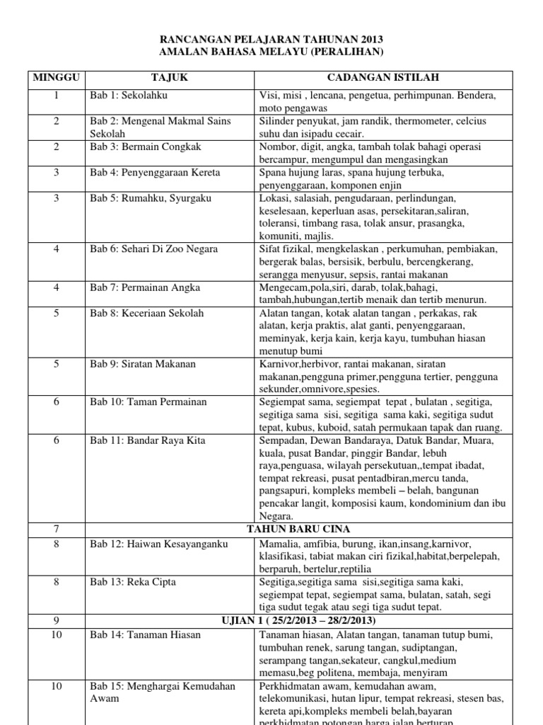 Rancangan Pelajaran Tahunan 2013 Amalan Bahasa Melayu Peralihan Minggu Tajuk Cadangan Istilah