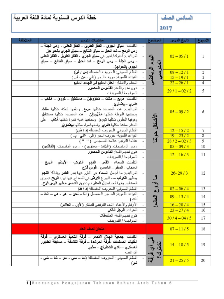 Rpt Bahasa Arab Tahun 6 Kssr 2018