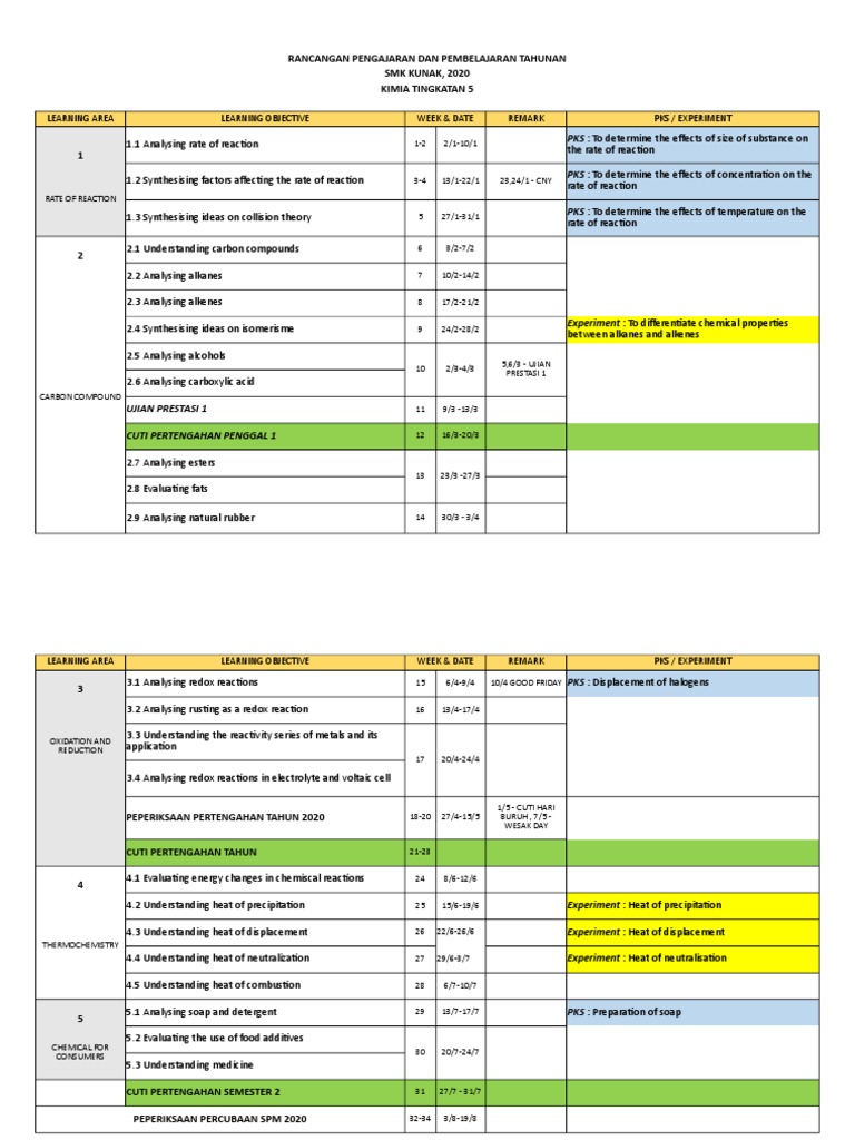 Rancangan Pengajaran Tahunan Kimia Tingkatan 5 2019 By Astalavista 7585 Issuu