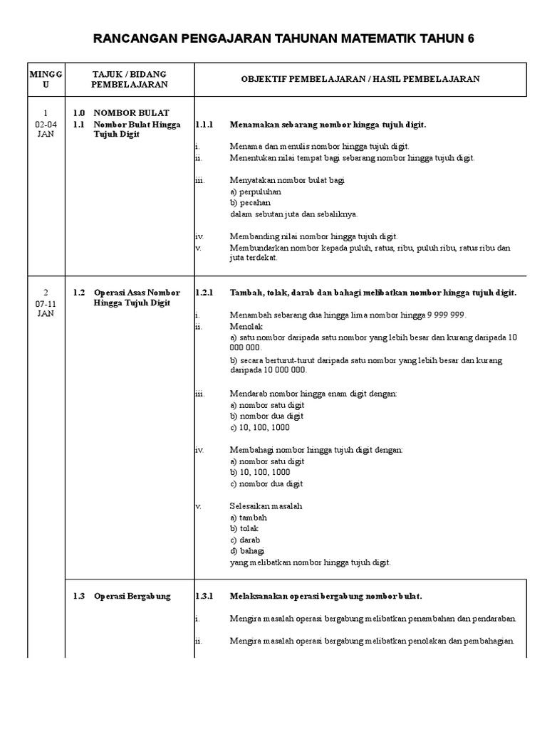 Rpt Matematik Tahun 6 Sumber Pendidikan