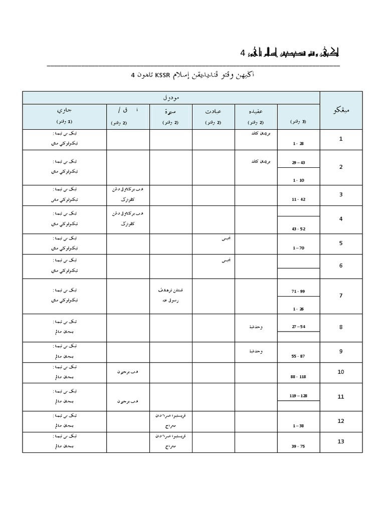 Agihan Waktu Rancangan Tahunan Pendidikan Islam Tahun 4 Kssr