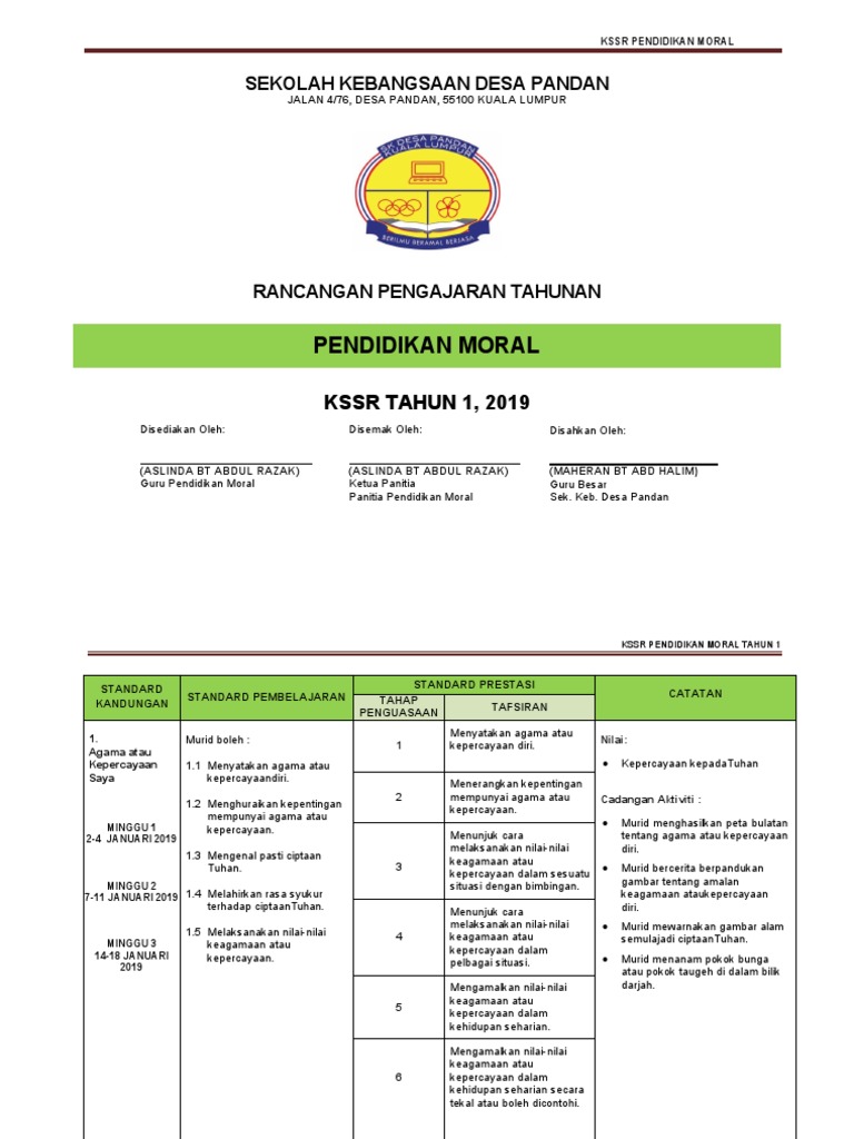 Rpt Tahun 1 Pendidikan Moral 2019