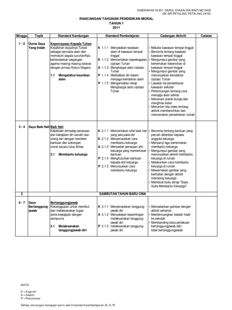 Himpunan Rpt Pendidikan Moral Tahun 1 Yang Menarik Khas Untuk Guru Guru Muat Turun Cikgu Ayu