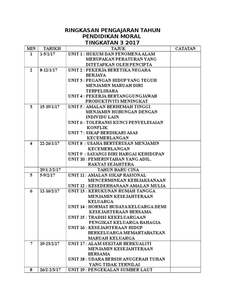 Download Rpt Pendidikan Moral Tingkatan 3 Menarik Rancangan Pengajaran Tahunan Pendidikan Moral Tingkatan 1 Skoloh