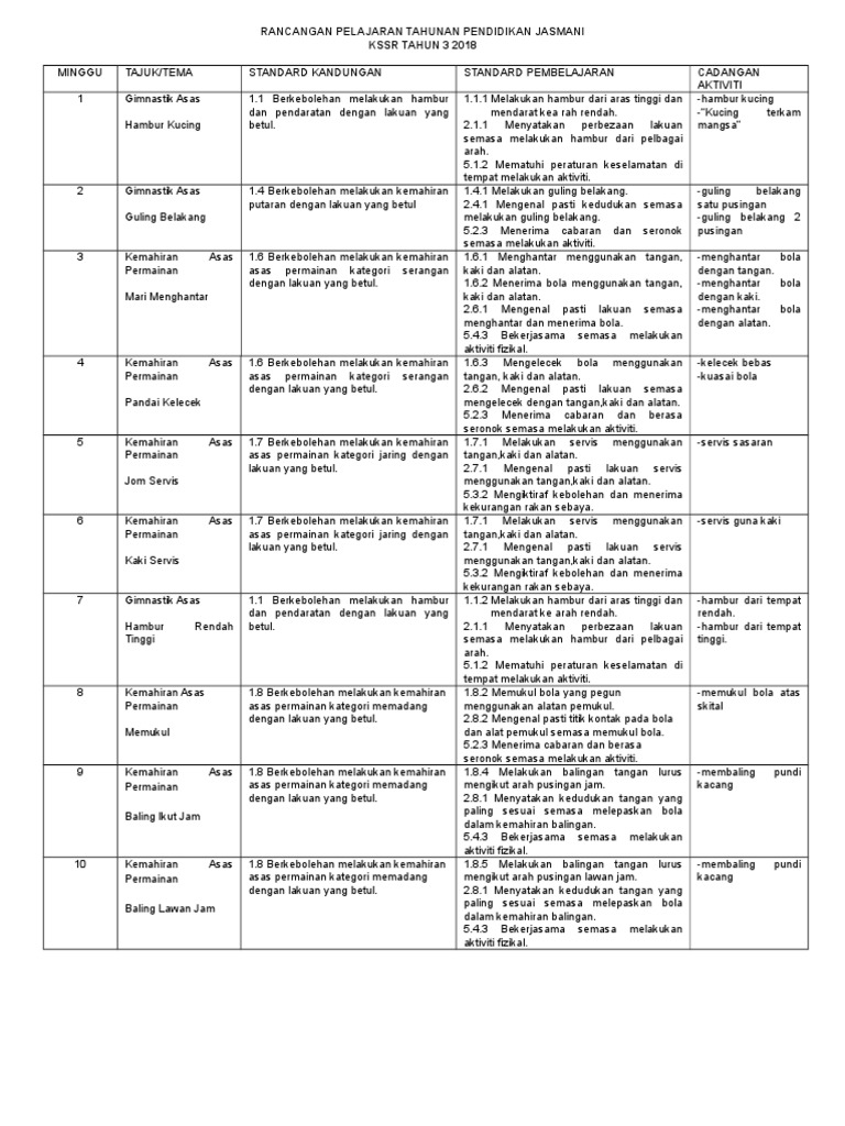 Download Rpt Pendidikan Jasmani Tahun 3 Meletup Rpt Pj Thn 1 2018 Skoloh