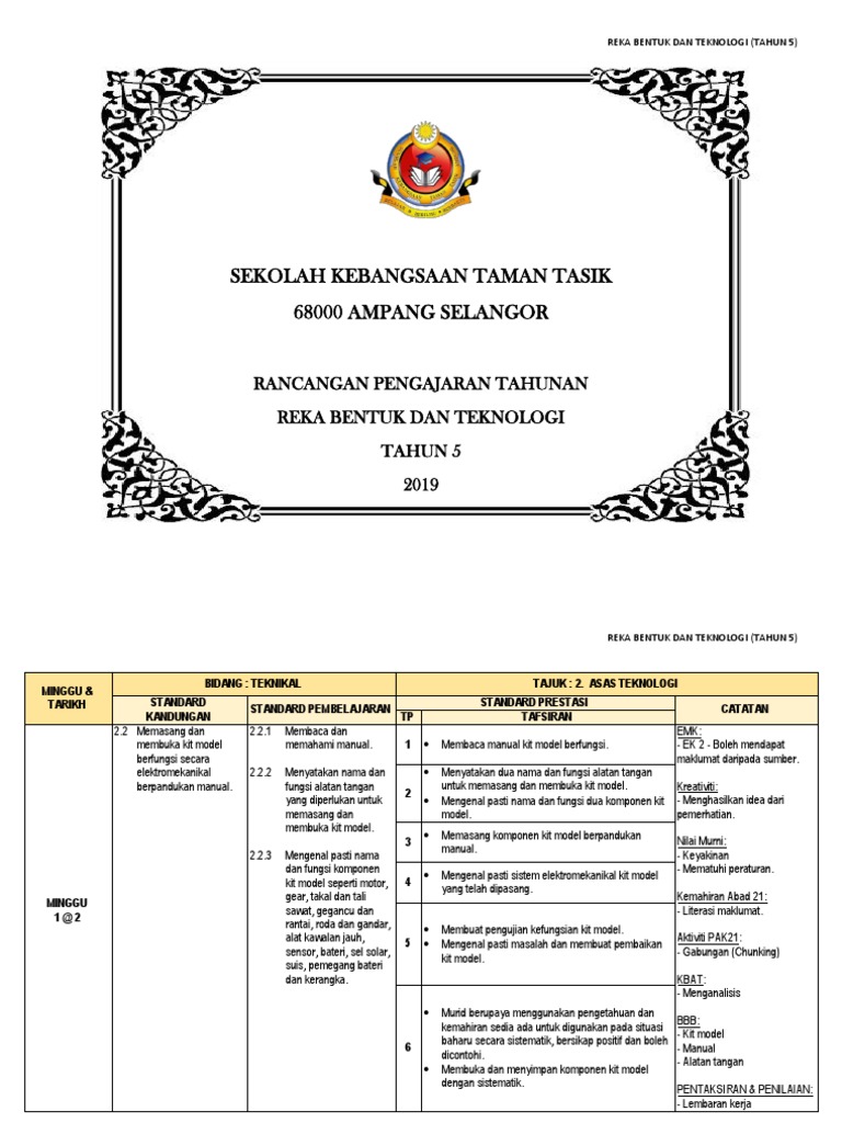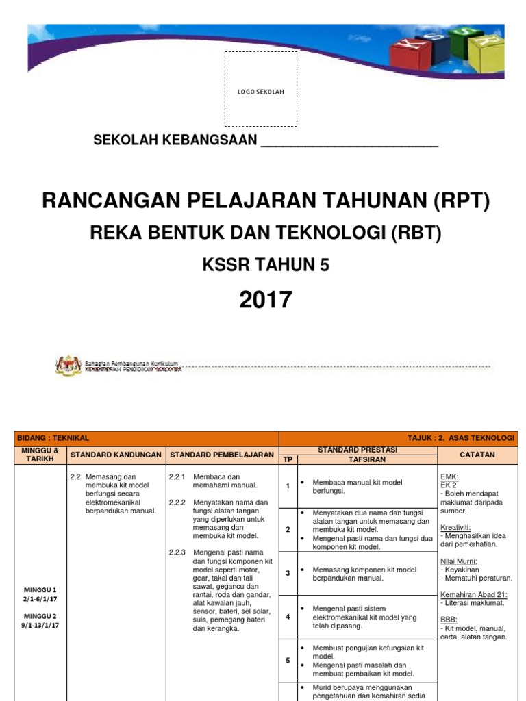 Download Rpt Reka Bentuk Teknologi Tahun 5 Meletup Rancangan Pengajaran Tahunan Kssr Matematik Tahun 1 Skoloh