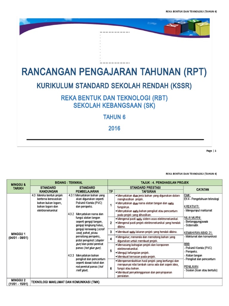 Download Rpt Reka Bentuk Teknologi Tahun 6 Menarik Rpt Rbt Tingkatan 1 2018 Skoloh