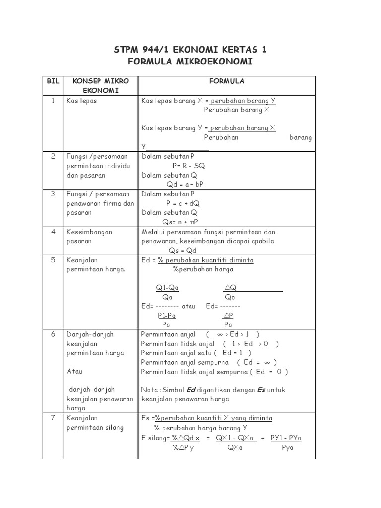 207926572 Formula Mikroekonomi Pdf Formula Mikroekonomi Stpm 944 1 Ekonomi Kertas 1 Formula Mikroekonomi Bil 1 Konsep Mikro Ekonomi Kos Lepas Formula Course Hero