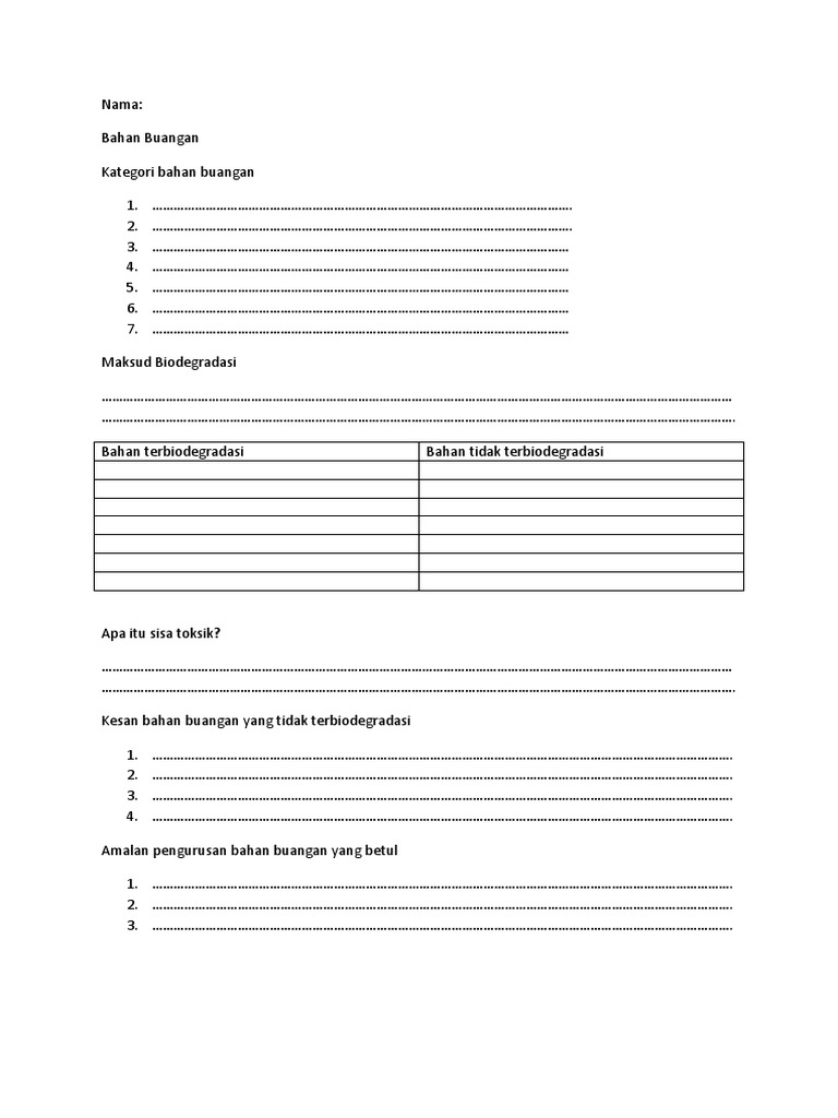 Bahan Buangan Terbiodegradasi Atau Tidak Interactive Worksheet
