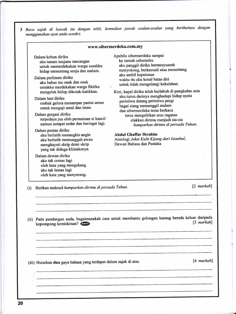 Bahasa Melayu Bahasa Malaysia Pmr Spm Komsas Tingkatan 4 Sajak Sibermerdeka Com My