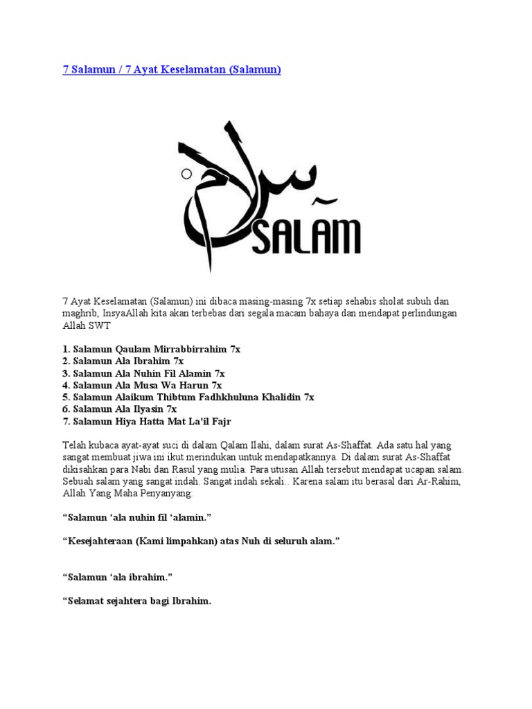 7 Ayat Keselamatan Salamun Ini Dibaca Rawatan Islam Al Mubin Syifa Al Ikhlas Facebook