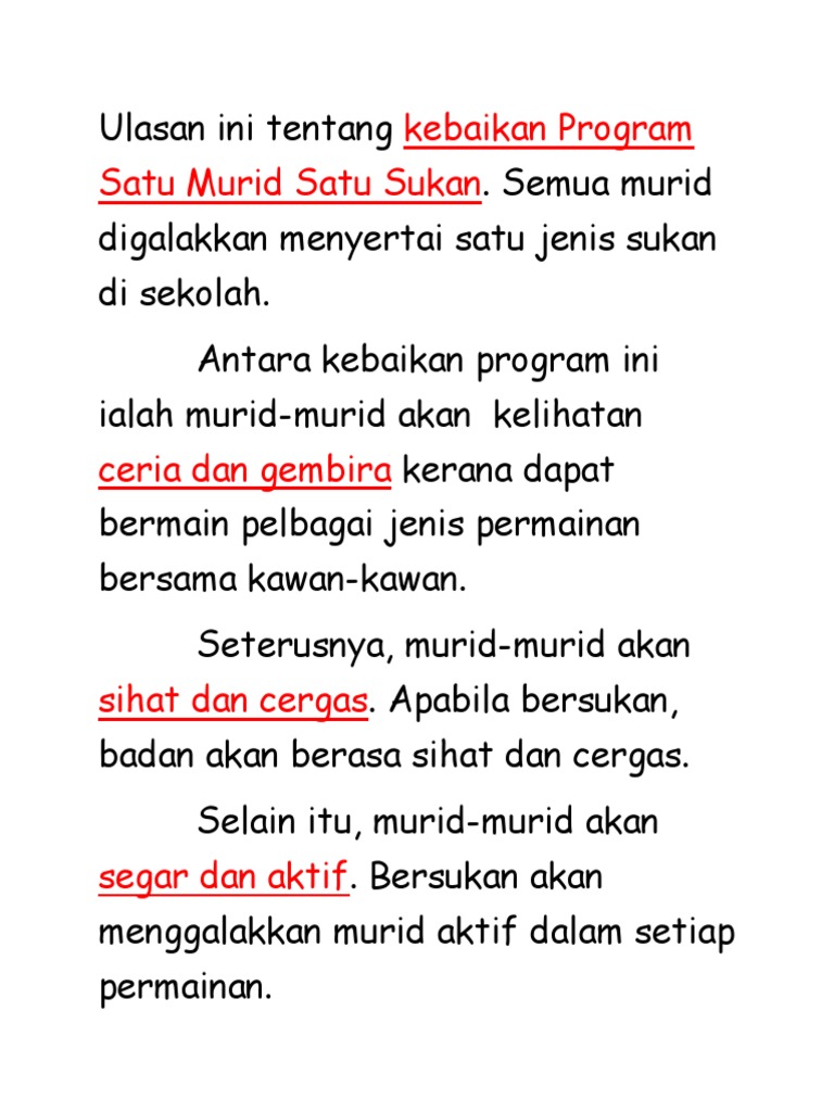 Ulasan Ini Tentang Kebaikan Program Satu Murid Satu Sukan