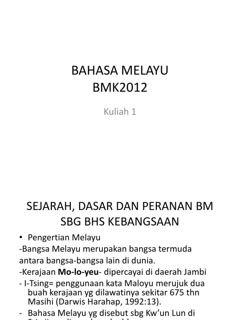 Bahasa Melayu Sejarah Dasar Dan Peranan Bahasa Melayu Sebagai Bahasa Kebangsaan Bmk2012