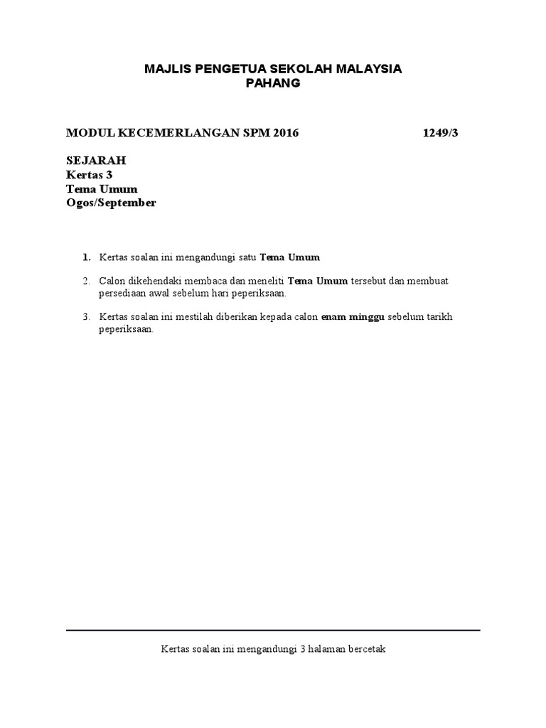 Spm 2016 Tema Umum Sejarah Kertas 3 Soalan Panduan Bumi Gemilang