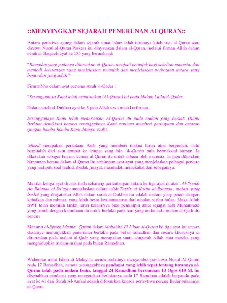 Doc Sejarah Turunnya Alqur An Lucky Watherlyn Academia Edu