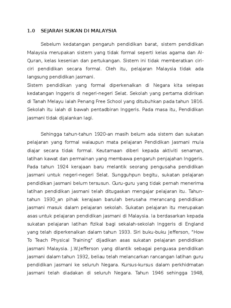 Sejarah Sukan Di Malaysia Dan Perkembangan Sukan