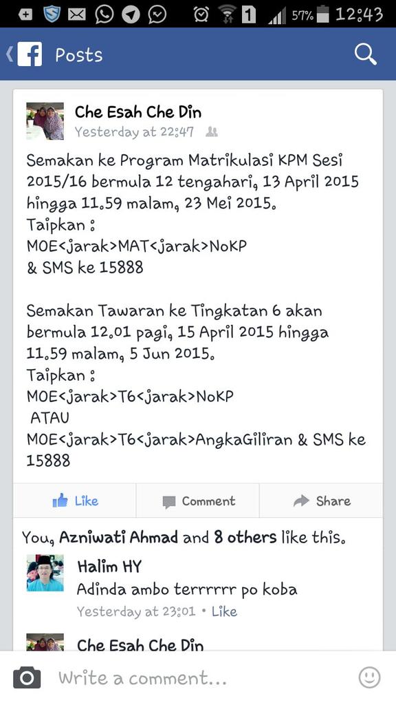 Na Zumyhuna Semak Keputusan Program Matrikulasi Sesi 2015 2016