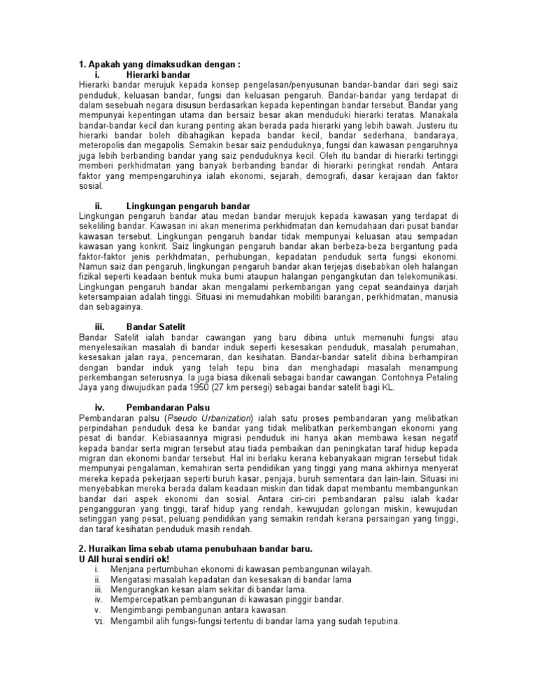 Geografi Stpm Bahagian B Transformasi Desa Dan Pembandaran