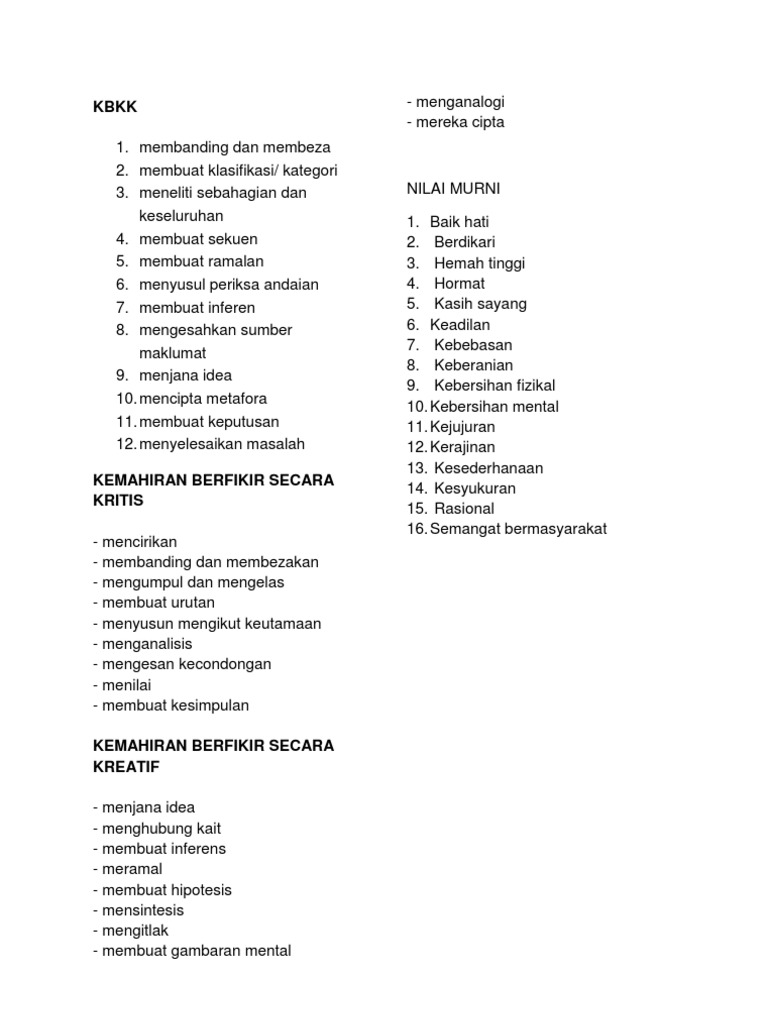 Kemahiran Berfikir Kritis Dan Kreatif Kbkk