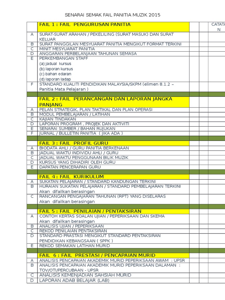 Doc Senarai Semak Isi Kandungan Fail Panitia Mata Pelajaran Panitia Fazila Wati Academia Edu
