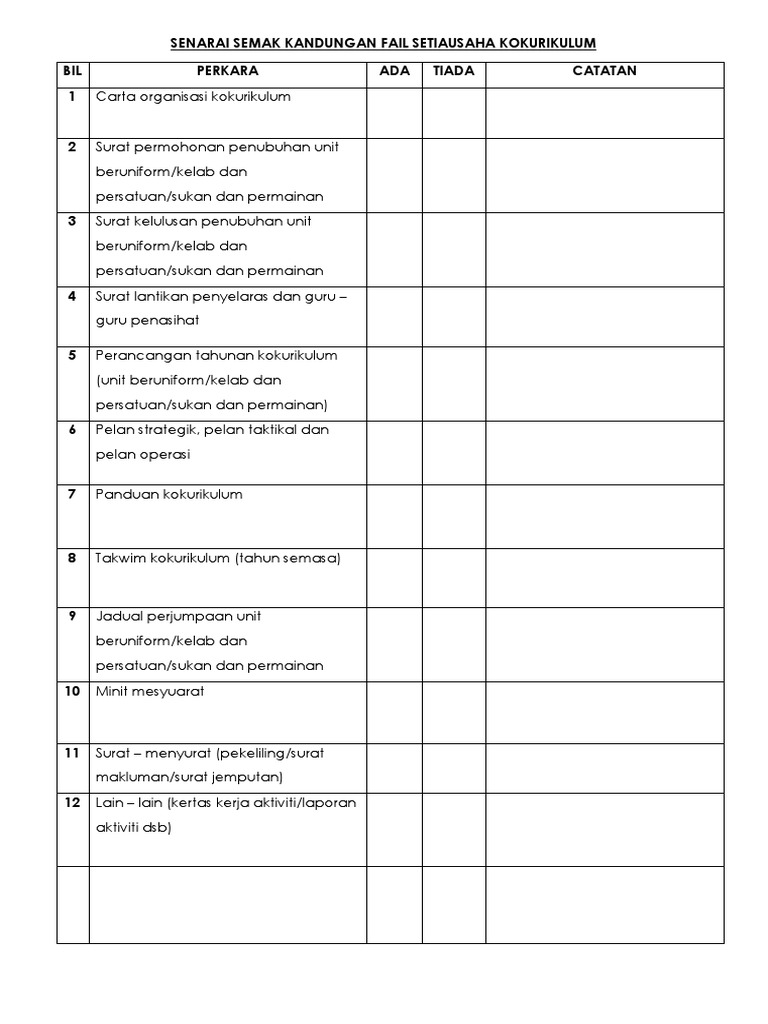 Senarai Semak Fail Kokurikulum Pages 1 5 Text Version Anyflip