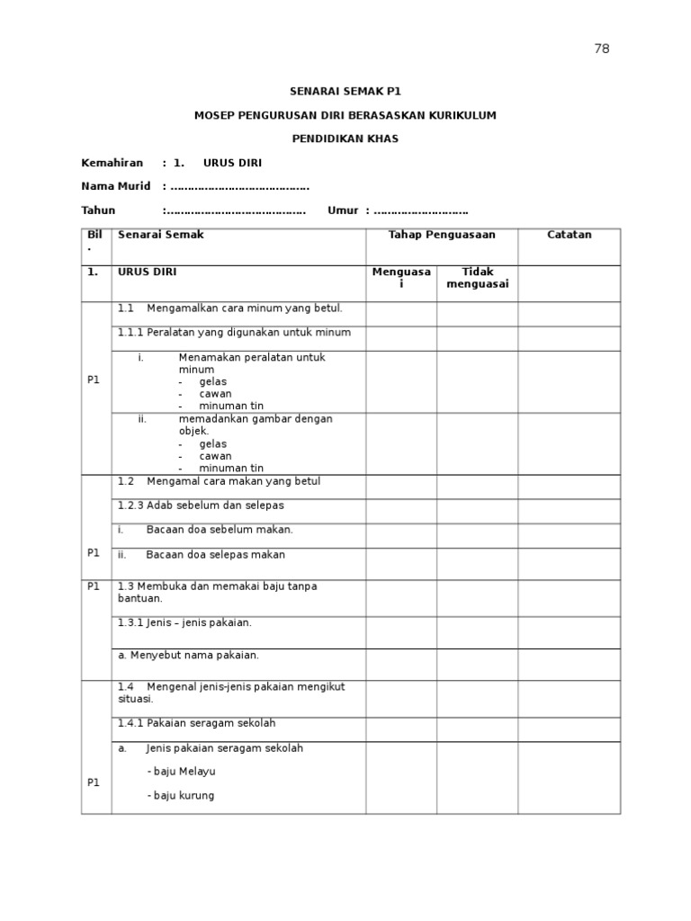 Senarai Semak Pengurusan Diri Pendidikan Khas
