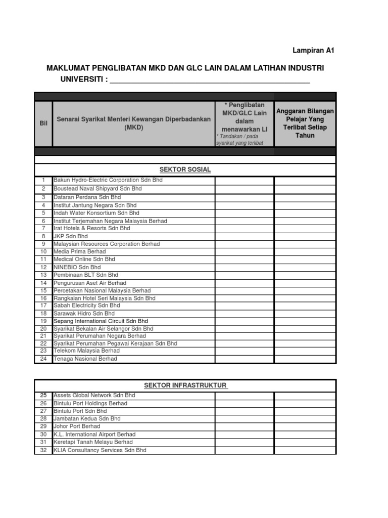 Senarai Syarikat Latihan Praktikal Untuk Pelajar Sains Kemasyarakatan